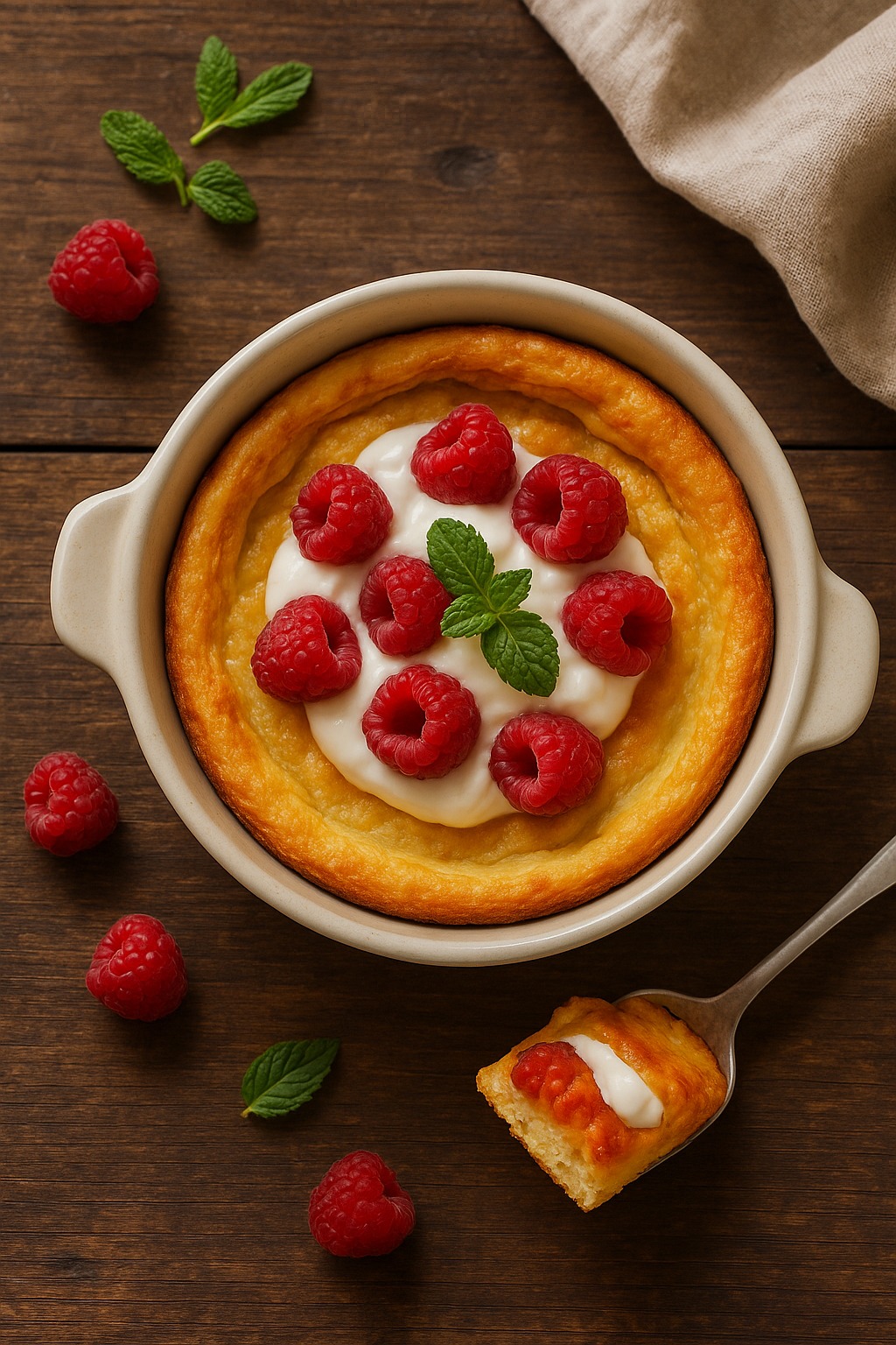 - Gdy omlet wystygnie posmaruj go skyrem i wyłóż na niego świeże maliny.