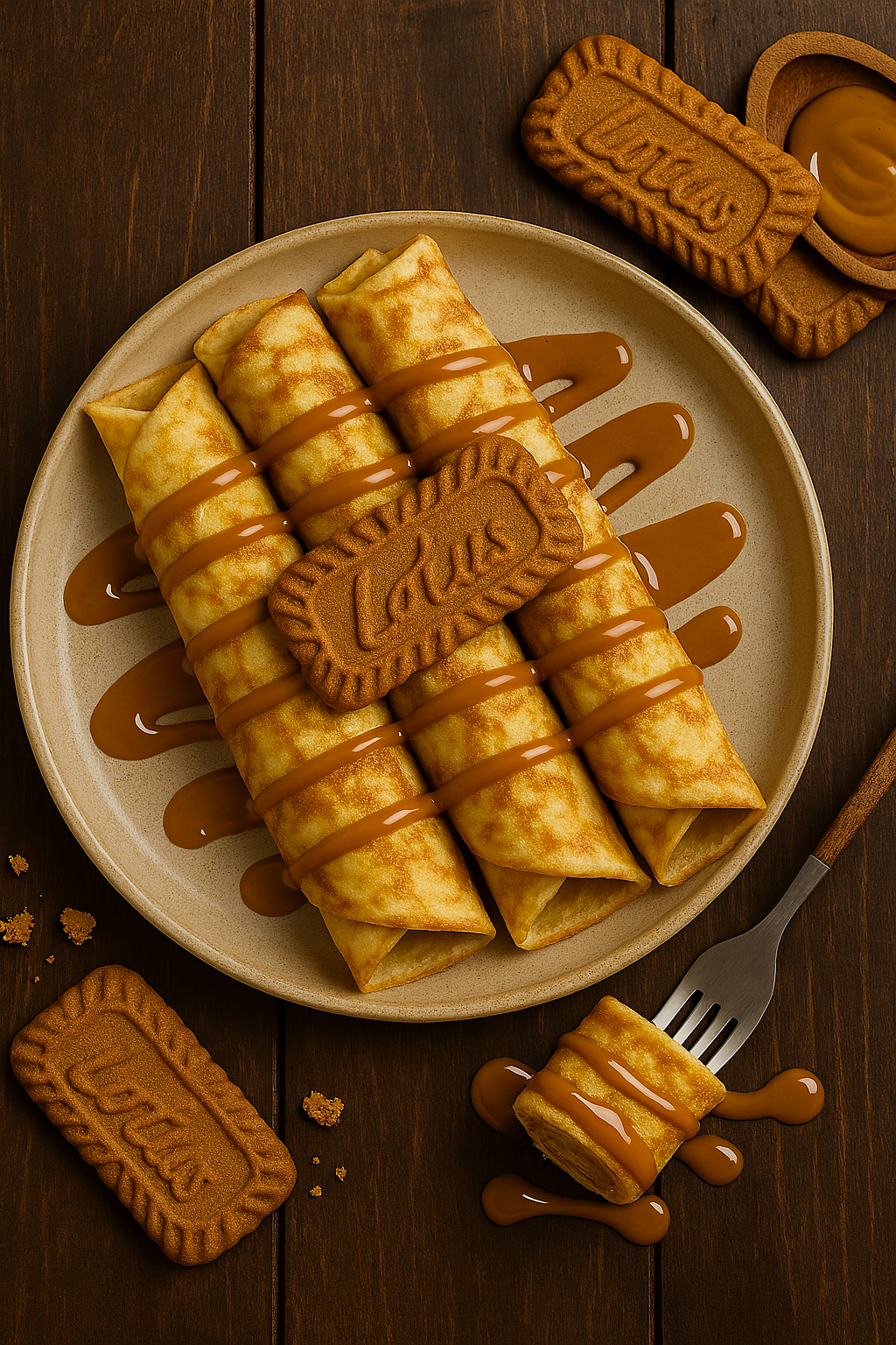 - Gotowe naleśniki smarujemy skyrem i posypujemy pokrojonymi w paseczki kinderkami.