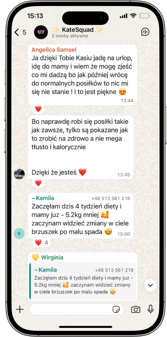 Każda z nas jest na innym etapie – po metamorfozie, w trakcie lub przed. I to jest super! Nowe laski wprowadzają powiew świeżej dawki motywacji, a stałe ambasadorki KateSQUAD z przyjemnością dzielą się swoim doświadczeniem. 💖