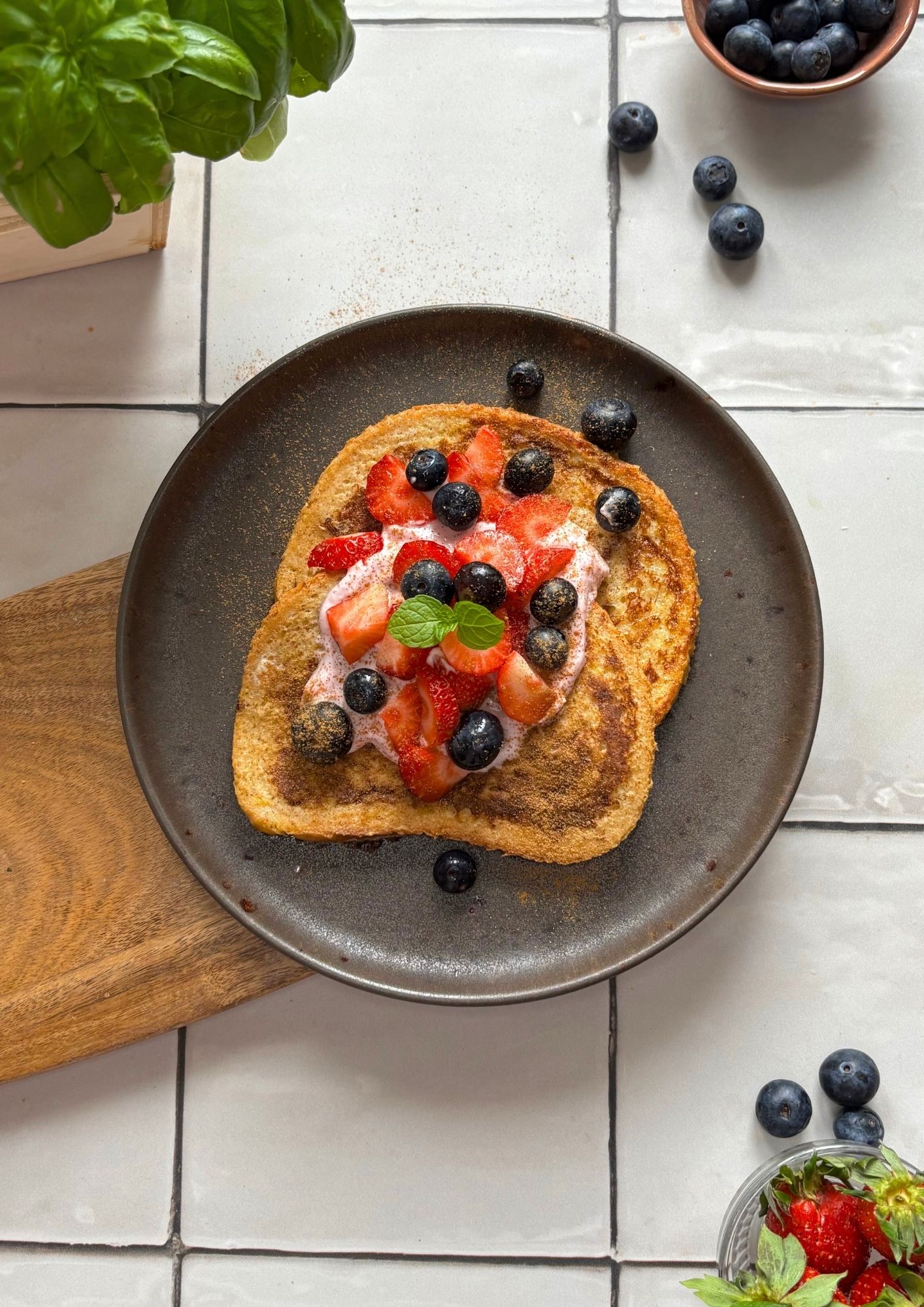 3. Smaż tosty z obu stron, aż będą złociste (ok. 2–3 minuty na stronę).